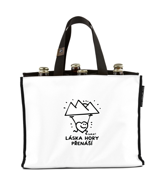 BEER CARRIER - bag for beer with design 1264 LÁSKA HORY PŘENÁŠÍ in color WHITE