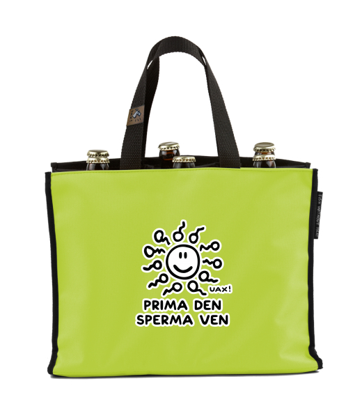 We make sustainable UAX clothing! - hand sewn in the Czech Republic uaxAccessories uaxAll productsBags and sacksBEER CARRIERdesign 1265 - PRIMA DEN SPERMA VENGREEN LIMET