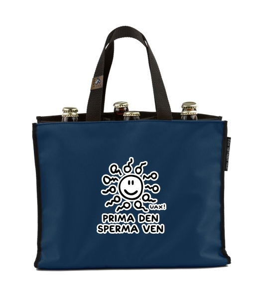 BEER CARRIER - bag for beer with design 1265 PRIMA DEN SPERMA VEN in color MIDNIGHT BLUE