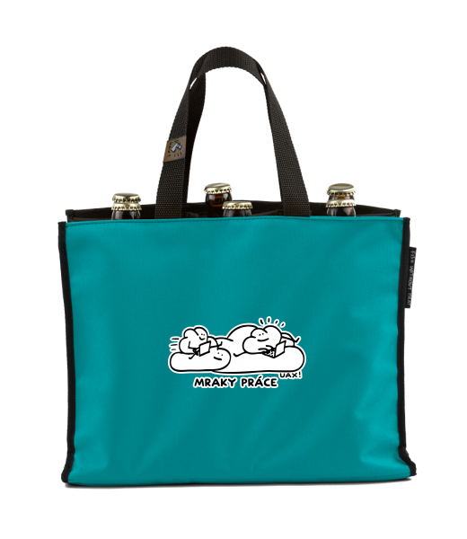 BEER CARRIER - bag for beer with design 1268 MRAKY PRÁCE in color TURQUOISE