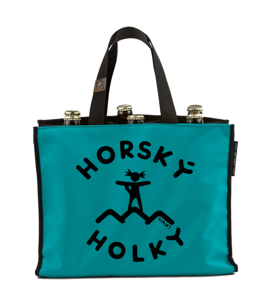 BEER CARRIER - bag for beer with design 1271 HORSKÝ HOLKY in color TURQUOISE
