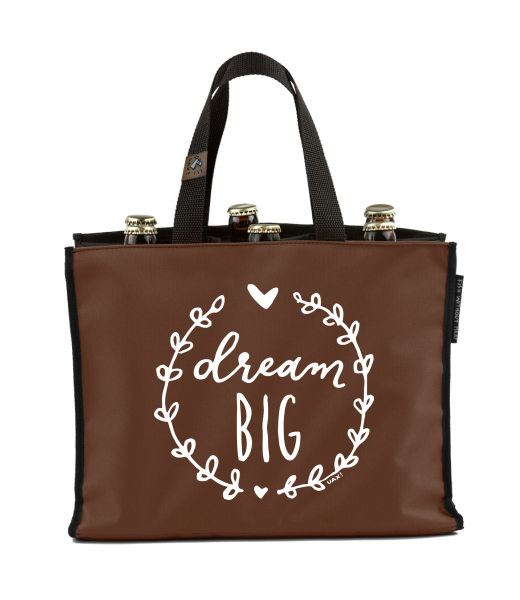 BEER CARRIER - bag for beer with design 1286 DREAM BIG in color BROWN SUGAR