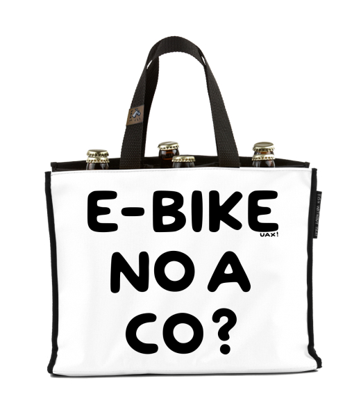 We make sustainable UAX clothing! - hand sewn in the Czech Republic uaxAccessories uaxAll productsBags and sacksBEER CARRIERdesign 1292 - E-BIKE NO A CO?WHITE