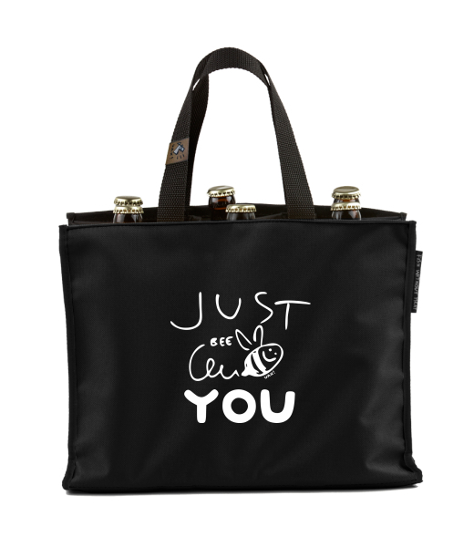 BEER CARRIER - bag for beer with design 1294 JUST BEE YOU in color BLACK