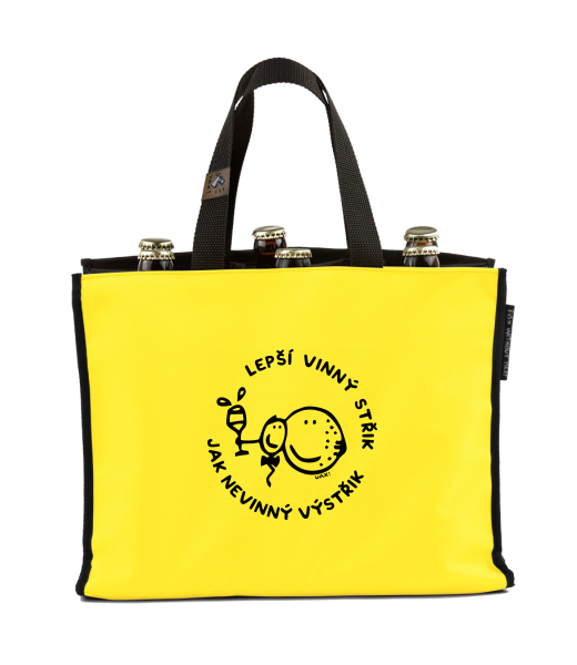 BEER CARRIER - bag for beer with design 1296 LEPŠÍ VINNÝ STŘIK JAK NEVINÝ VÝSTŘIK in color NEW YORK