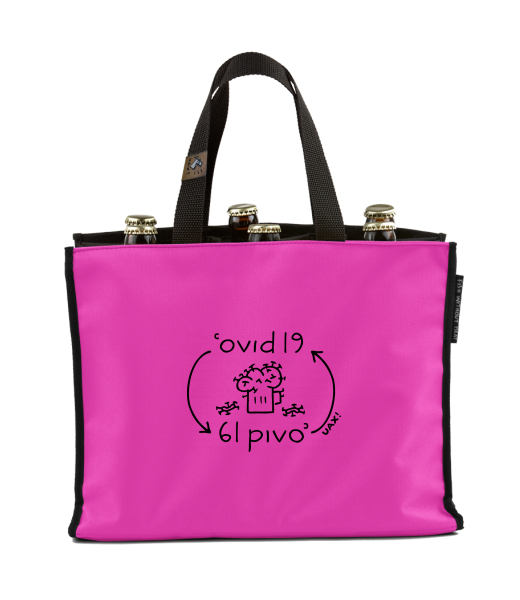 BEER CARRIER - bag for beer with design 1297 COVID 6L PIVO in color INDIAN LILA