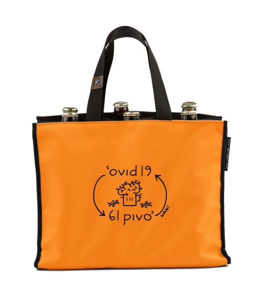 BEER CARRIER - bag for beer with design 1297 COVID 6L PIVO in color SIGNAL ORANGE