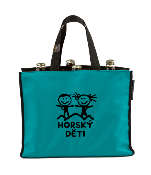 BEER CARRIER - bag for beer with design 1300 HORSKÝ DĚTI in color TURQUOISE