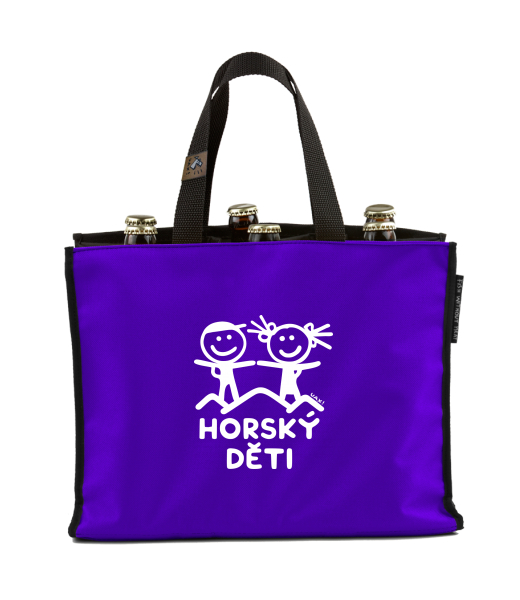 BEER CARRIER - bag for beer with design 1300 HORSKÝ DĚTI in color VIOLET