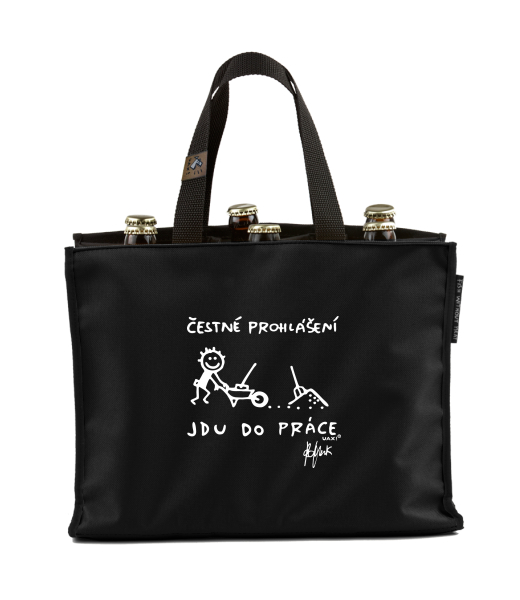 BEER CARRIER - bag for beer with design 1304 ČESTNÉ PROHLÁŠENÍ JDU DO PRÁCE in color BLACK