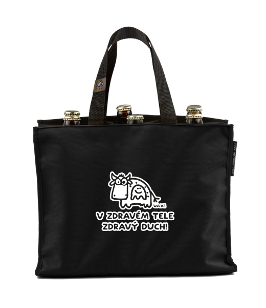 We make sustainable UAX clothing! - hand sewn in the Czech Republic uaxAccessories uaxAll productsBags and sacksBEER CARRIERdesign 1309 - V ZDRAVÉM TELE ZDRAVÝ DUCHBLACK