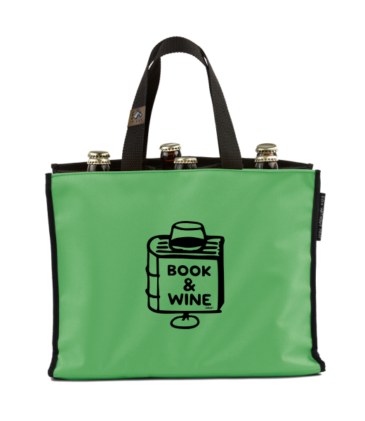 BEER CARRIER - bag for beer with design 1322 BOOK AND WINE in color BRIGHT GREEN