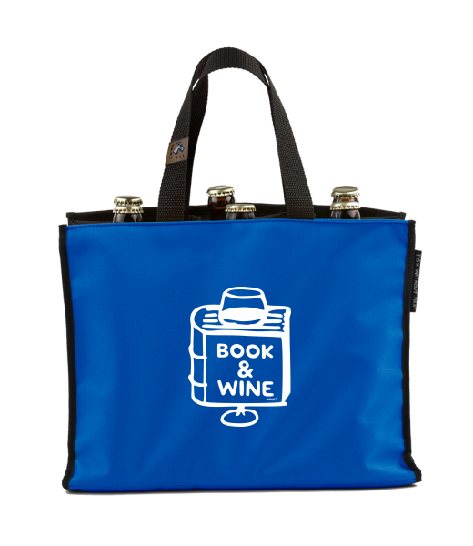 BEER CARRIER - bag for beer with design 1322 BOOK AND WINE in color CLASSIC BLUE