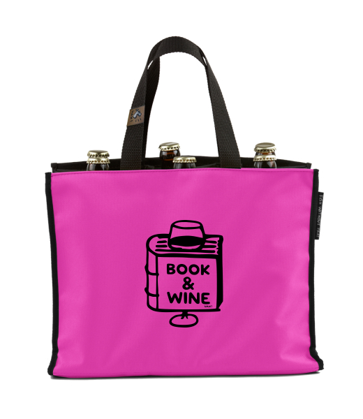 BEER CARRIER - bag for beer with design 1322 BOOK AND WINE in color INDIAN LILA
