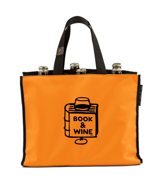 BEER CARRIER - bag for beer with design 1322 BOOK AND WINE in color SIGNAL ORANGE