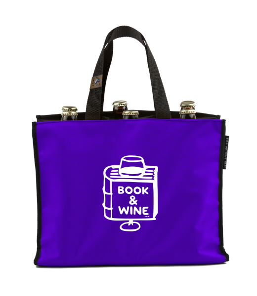 BEER CARRIER - bag for beer with design 1322 BOOK AND WINE in color VIOLET