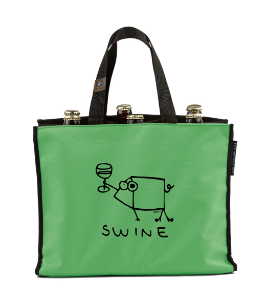 BEER CARRIER - bag for beer with design 1323 SWINE in color BRIGHT GREEN