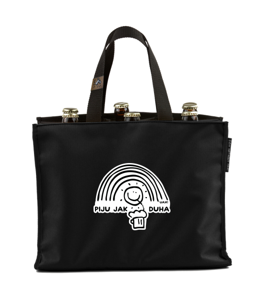 BEER CARRIER - bag for beer with design 1324 PIJU JAK DUHA in color BLACK