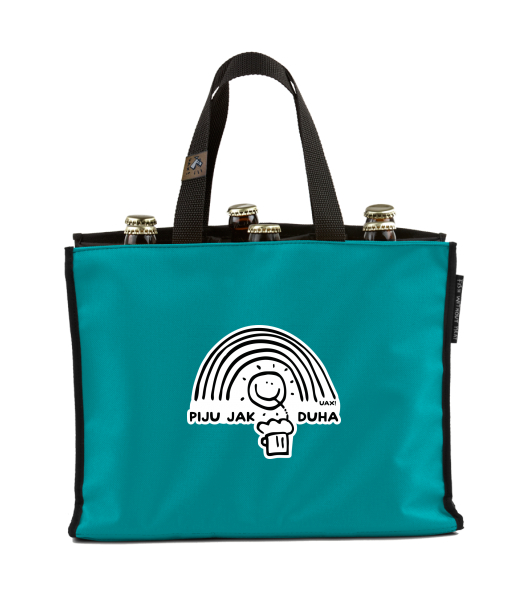 BEER CARRIER - bag for beer with design 1324 PIJU JAK DUHA in color TURQUOISE