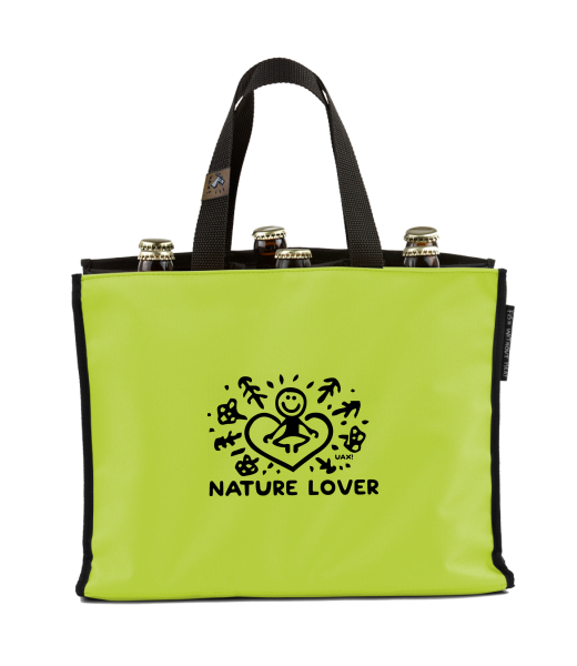 BEER CARRIER - bag for beer with design 1325 NATURE LOVER in color GREEN LIMET