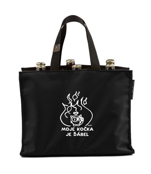 BEER CARRIER - bag for beer with design 1326 MOJE KOČKA JE ĎÁBEL in color BLACK
