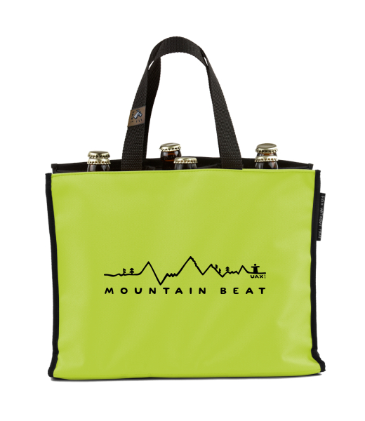 BEER CARRIER - bag for beer with design 1327 MOUNTAIN BEAT in color GREEN LIMET
