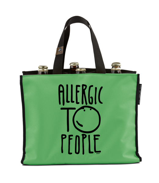 BEER CARRIER - bag for beer with design 1329 ALLERGIC TO PEOPLE in color BRIGHT GREEN