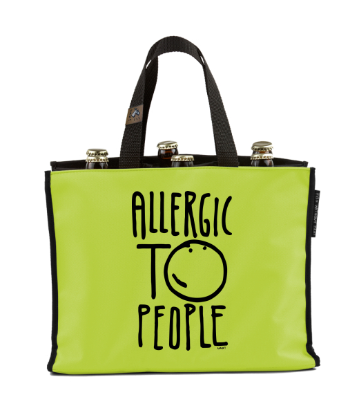 BEER CARRIER - bag for beer with design 1329 ALLERGIC TO PEOPLE in color GREEN LIMET