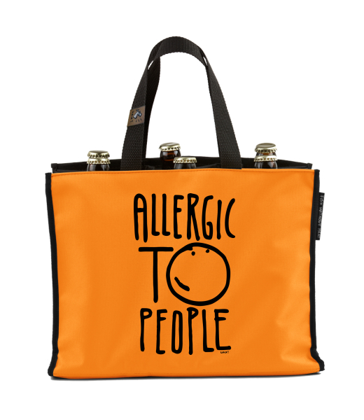 BEER CARRIER - bag for beer with design 1329 ALLERGIC TO PEOPLE in color SIGNAL ORANGE