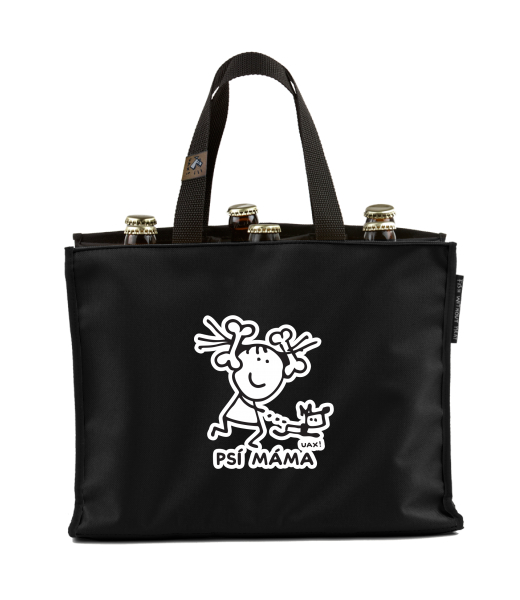 BEER CARRIER - bag for beer with design 1330 PSÍ MÁMA in color BLACK