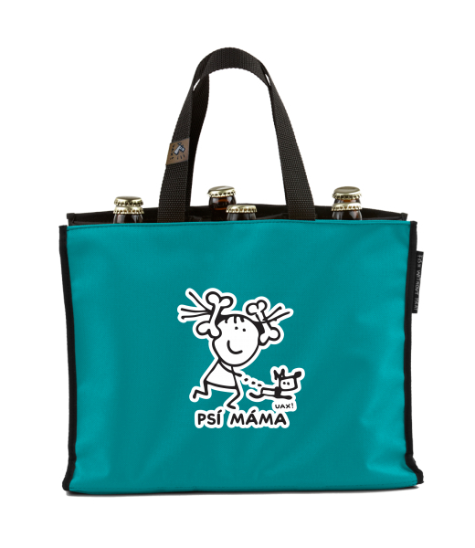 BEER CARRIER - bag for beer with design 1330 PSÍ MÁMA in color TURQUOISE
