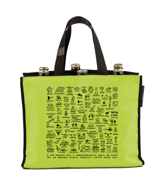 BEER CARRIER - bag for beer with design 1332 TRANSLEJT LIMITED EDYŠN 3.0 MSK in color GREEN LIMET