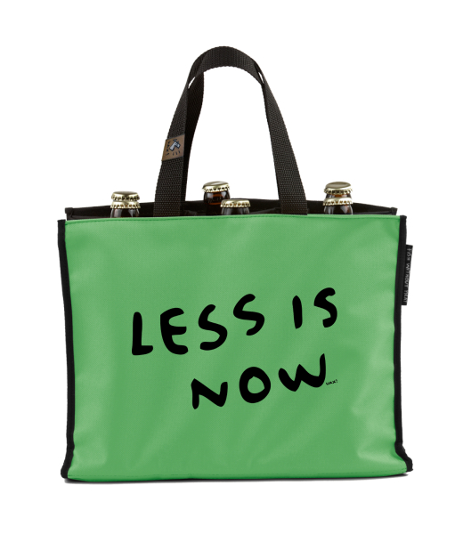 BEER CARRIER - bag for beer with design 1333 LESS IS NOW in color BRIGHT GREEN