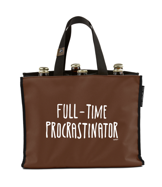 BEER CARRIER - bag for beer with design 1334 FULL-TIME PROCRASTINATOR in color BROWN SUGAR