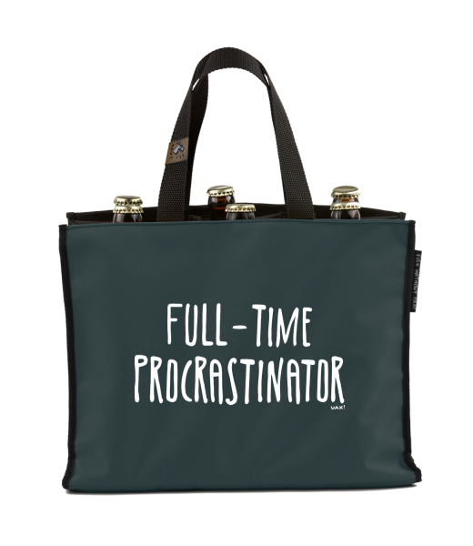 BEER CARRIER - bag for beer with design 1334 FULL-TIME PROCRASTINATOR in color GREY INK