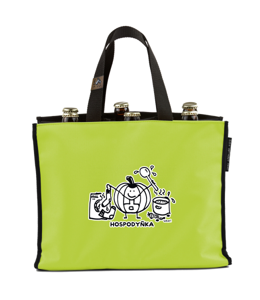 BEER CARRIER - bag for beer with design 1335 HOSPODYŇKA in color GREEN LIMET