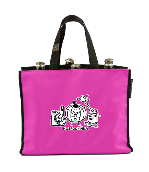 BEER CARRIER - bag for beer with design 1335 HOSPODYŇKA in color INDIAN LILA