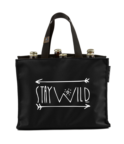 BEER CARRIER - bag for beer with design 1338 STAY WILD 2 in color BLACK
