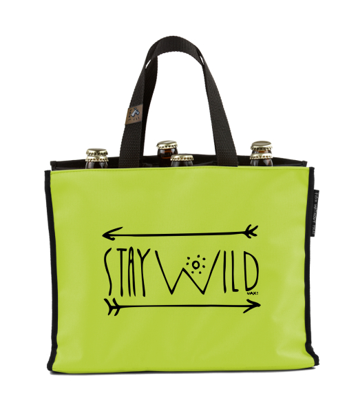 BEER CARRIER - bag for beer with design 1338 STAY WILD 2 in color GREEN LIMET