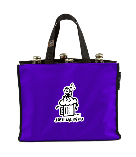BEER CARRIER - bag for beer with design 1341 JSEM NA PIVU in color VIOLET