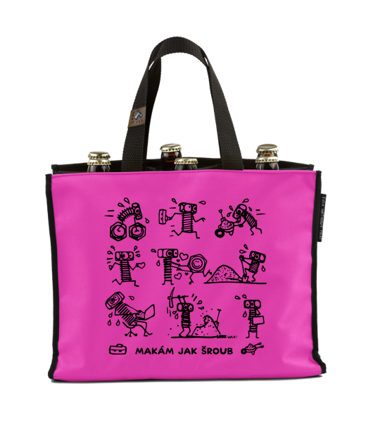 BEER CARRIER - bag for beer with design 1343 MAKÁM JAK ŠROUB 2 in color INDIAN LILA