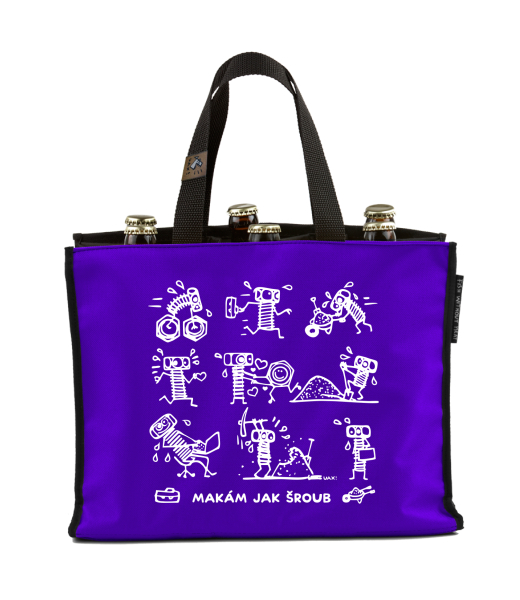 BEER CARRIER - bag for beer with design 1343 MAKÁM JAK ŠROUB 2 in color VIOLET