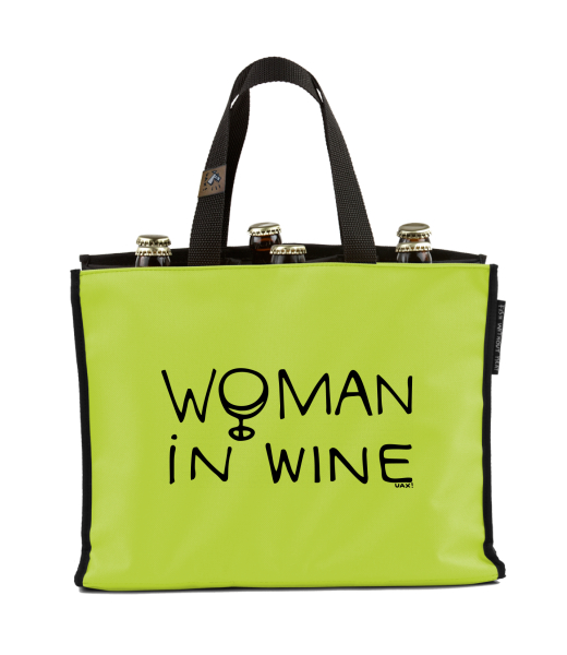 We make sustainable UAX clothing! - hand sewn in the Czech Republic uaxAccessories uaxAll productsBags and sacksBEER CARRIERdesign 1346 - WOMAN IN WINE 1GREEN LIMET