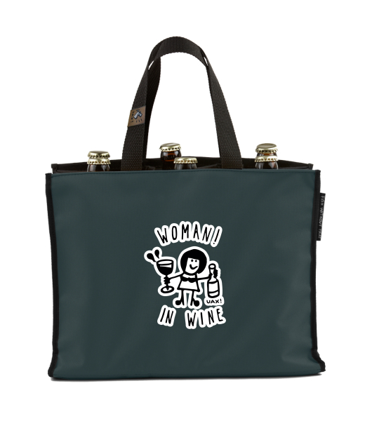 We make sustainable UAX clothing! - hand sewn in the Czech Republic uaxAccessories uaxAll productsBags and sacksBEER CARRIERdesign 1347 - WOMAN IN WINE 2GREY INK