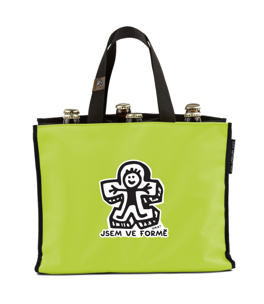 BEER CARRIER - bag for beer with design 1351 JSEM VE FORMĚ in color GREEN LIMET