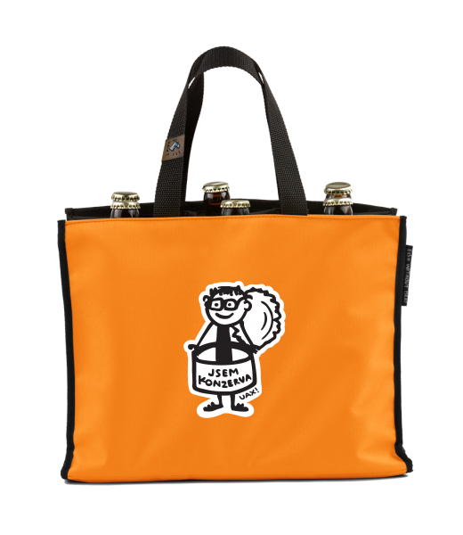We make sustainable UAX clothing! - hand sewn in the Czech Republic uaxAccessories uaxAll productsBags and sacksBEER CARRIERdesign 1352 - JSEM KONZERVA MENSIGNAL ORANGE