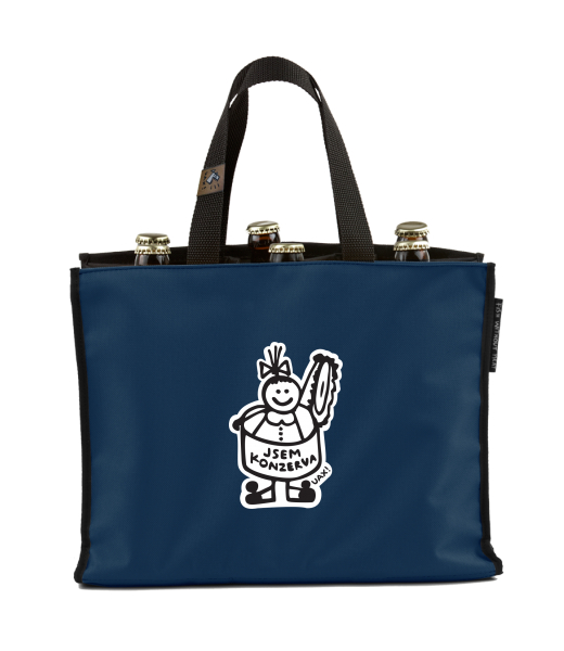 BEER CARRIER - bag for beer with design 1353 JSEM KONZERVA WOMEN in color MIDNIGHT BLUE