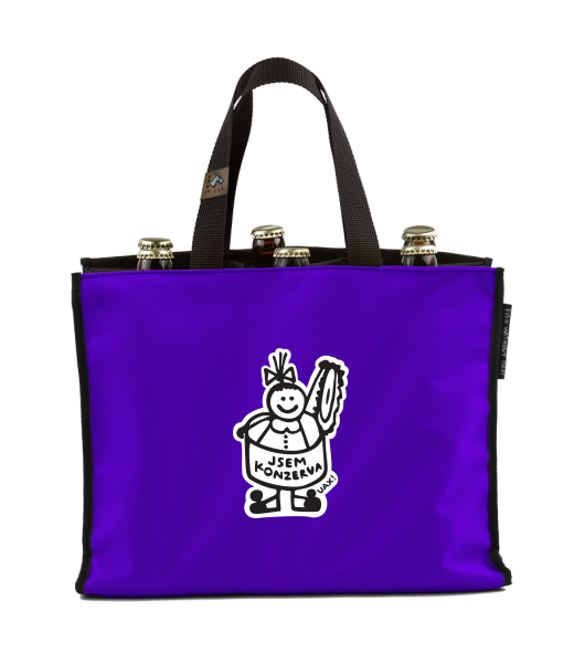 BEER CARRIER - bag for beer with design 1353 JSEM KONZERVA WOMEN in color VIOLET