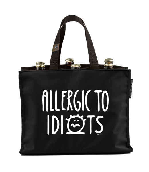 BEER CARRIER - bag for beer with design 1354 ALLERGIC TO IDIOTS in color BLACK