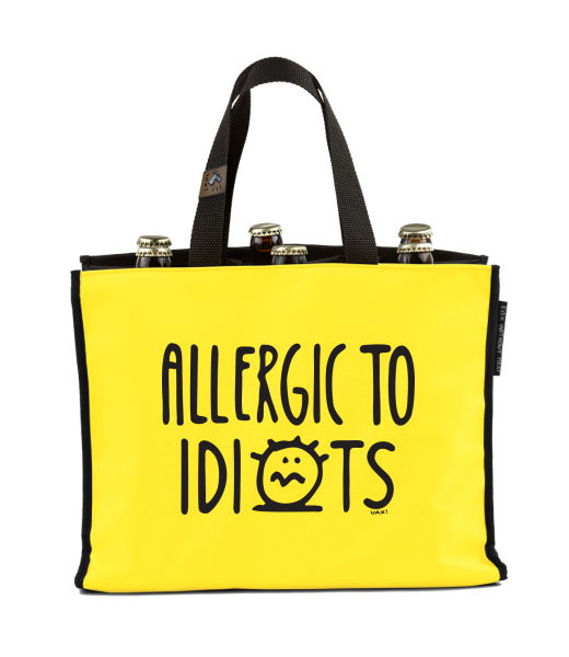 BEER CARRIER - bag for beer with design 1354 ALLERGIC TO IDIOTS in color NEW YORK